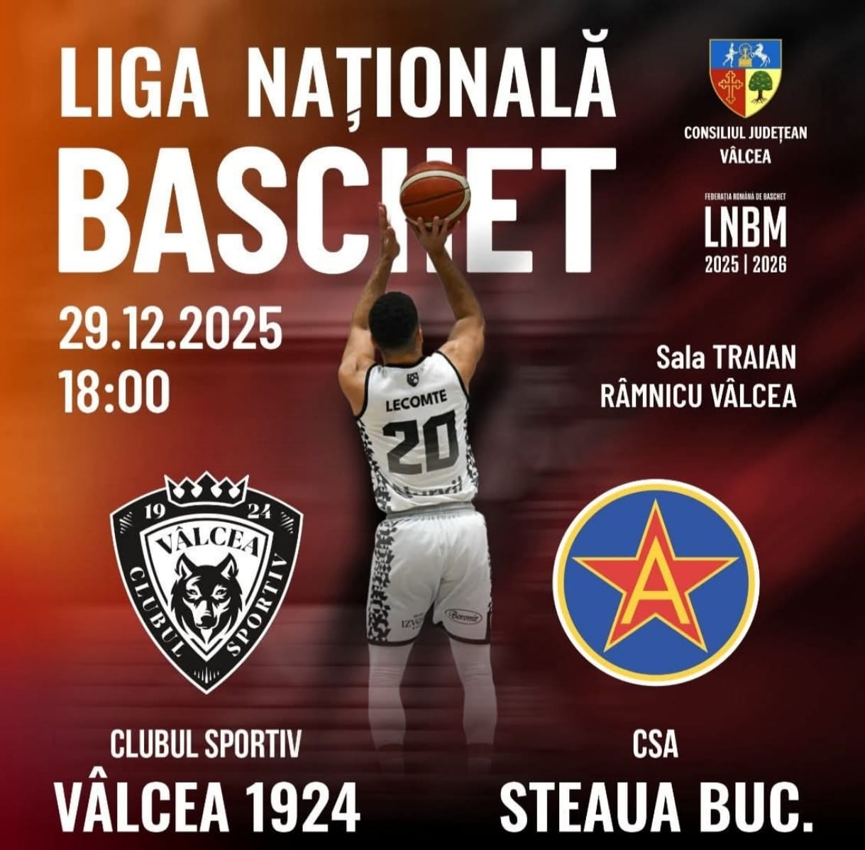 📌 CS Vâlcea – Steaua București, sala Traian, ora 18,00.