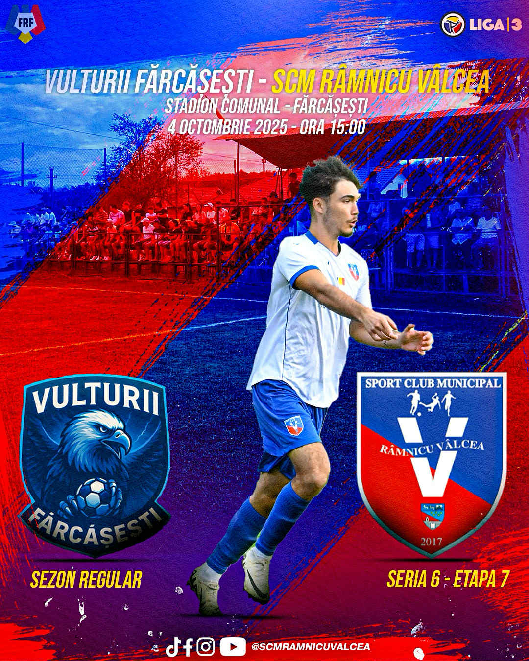 E derby astăzi la Fărcășești, orice am zice. SCM Râmnicu Vâlcea, lidera seriei a 6 din Liga 3, întâlnește formația locală Vulturii, locul trei în clasament.