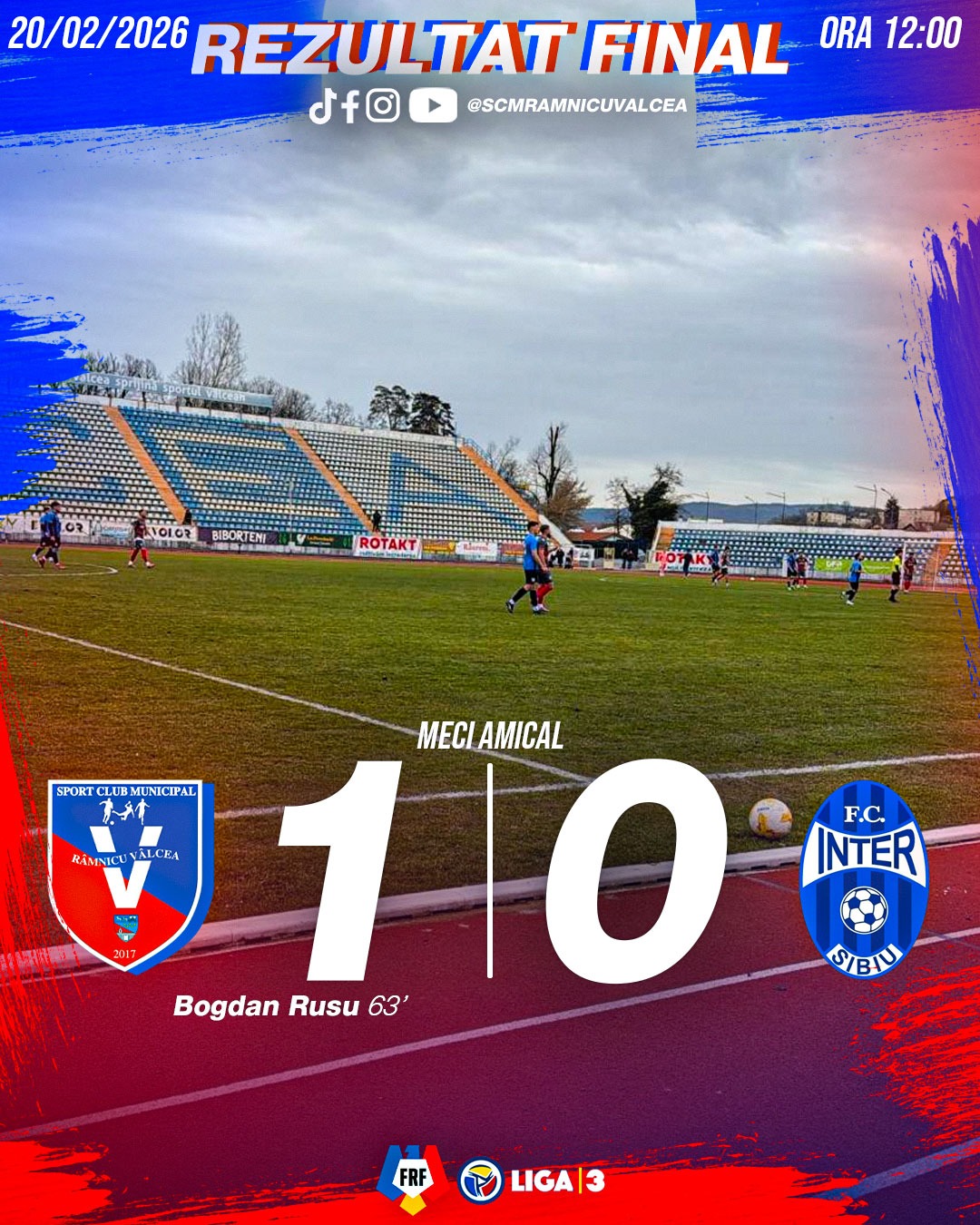 ➡️În ultimul meci de pregătire din pauza competițională, SCM Râmnicu Vâlcea a învins cu 1-0 pe Inter Sibiu, ocupanta locului 6 în aceeași serie cu vâlcenii. Partida s-a jucat astăzi pe stadionul din Zăvoi.